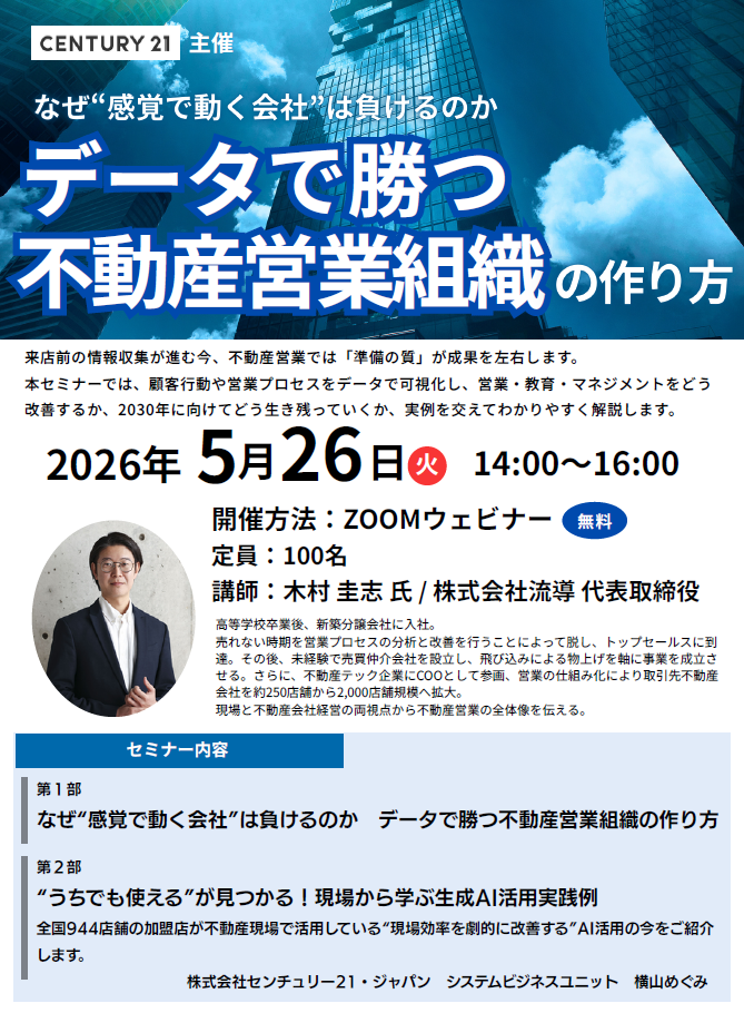 【5/26(火)】データで勝つ不動産営業組織の作り方